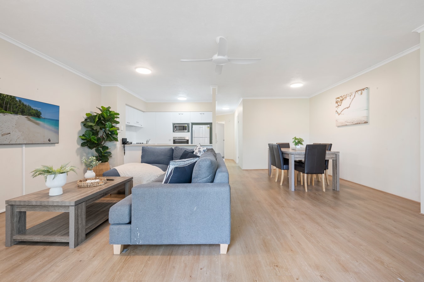Located 100m away from the beach, weather you are looking to stay a short time or stay for months, it is ready and set up to feel like a home away from home. The apartment is bright, spacious, and fully self-contained, featuring a well-equipped kitchen, open-plan living and dining area, and two private balconies. The bedrooms are comfortable and airy, with plenty of storage, there are two upgraded bathrooms for more convenience and privacy. You’ll also have access to in-room laundry facilities, free WiFi, air conditioning (in the living area), and secure parking.