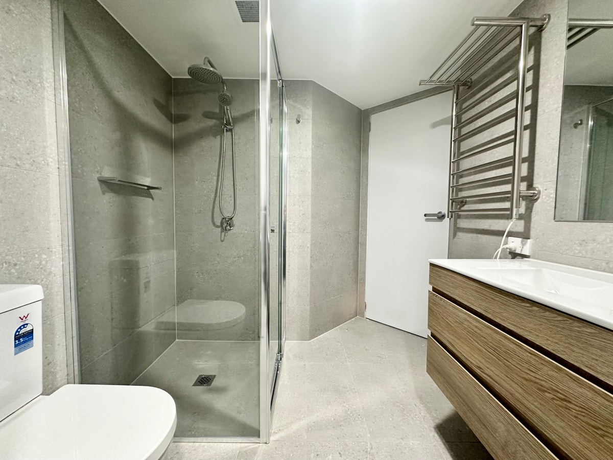 Located 100m away from the beach, weather you are looking to stay a short time or stay for months, it is ready and set up to feel like a home away from home. This upgraded 2-bedroom apartment is bright, spacious, and fully self-contained, featuring a well-equipped kitchen, open-plan living and dining area, and a private sunny terrace. The bedrooms are comfortable and airy, with plenty of storage, there are two bathrooms for more convenience and privacy. You’ll also have access to in-room laundry facilities, free WiFi, air conditioning (in the lounge area only), and secure parking.