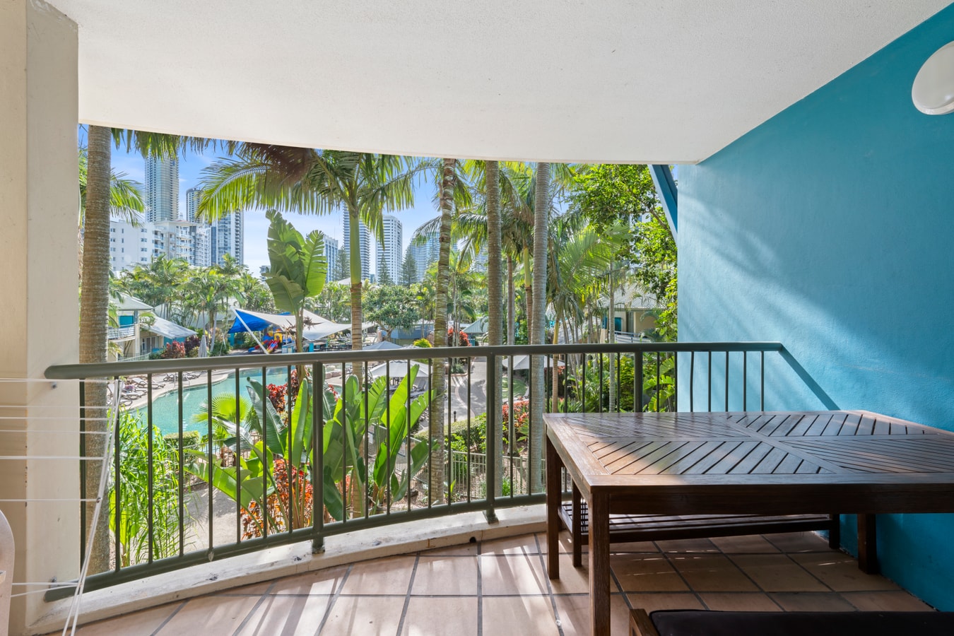 Nested between Broadbeach and Mermaid Beach, the resort boasts a prime location just 100 metres from the patrolled golden sands of Kurrawa Beach, placing you within easy walking distance of everything Broadbeach has to offer. Set on Alexandra Avenue, the resort is surrounded by lush tropical gardens and is only a short stroll to Pacific Fair Shopping Centre—one of Queensland’s largest malls with over 250 shops and a cinema complex—as well as The Star Gold Coast casino, vibrant restaurants, chic cafes, and lively bars.