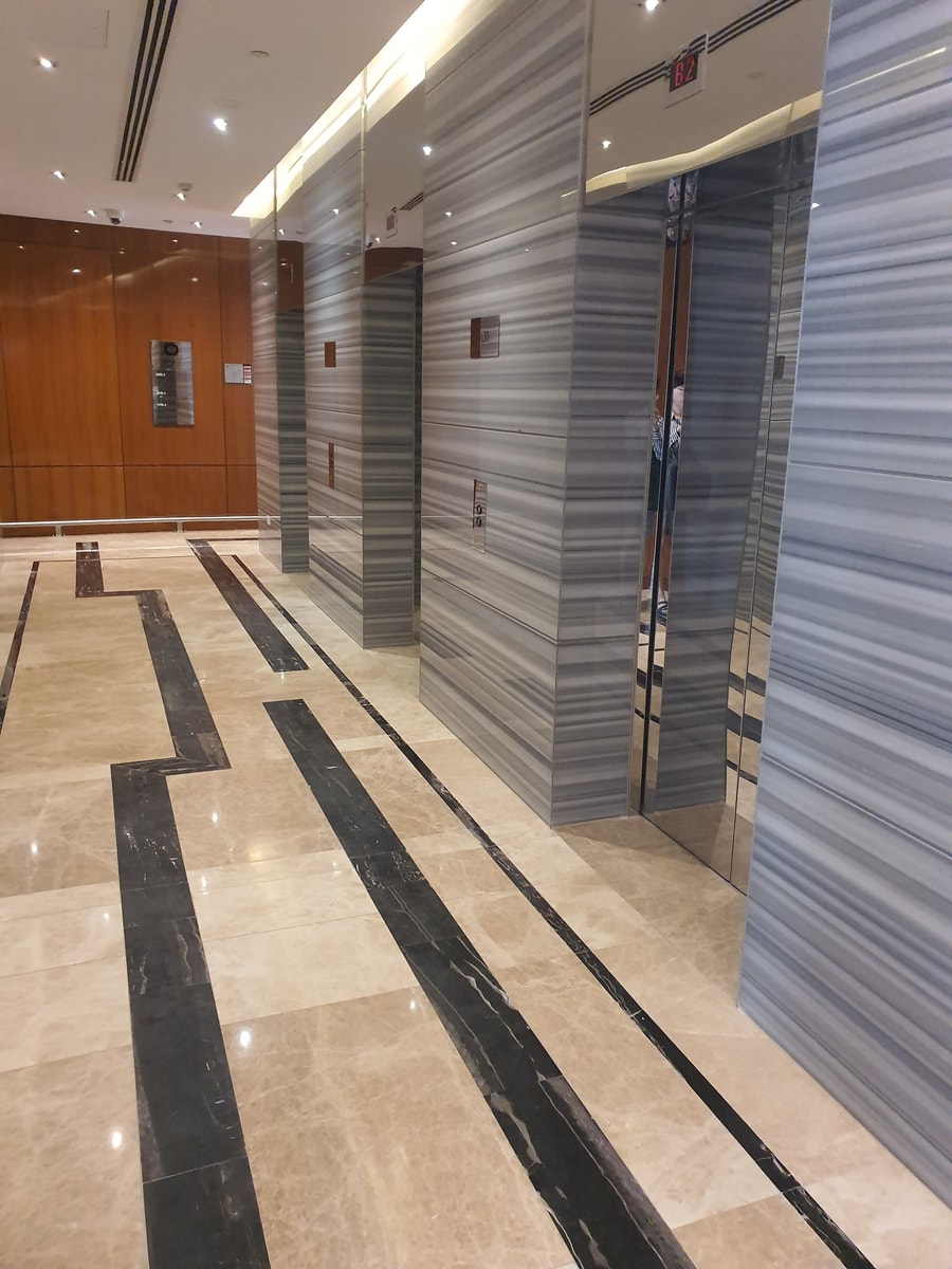 Please ensure you are dry before walking through common areas.