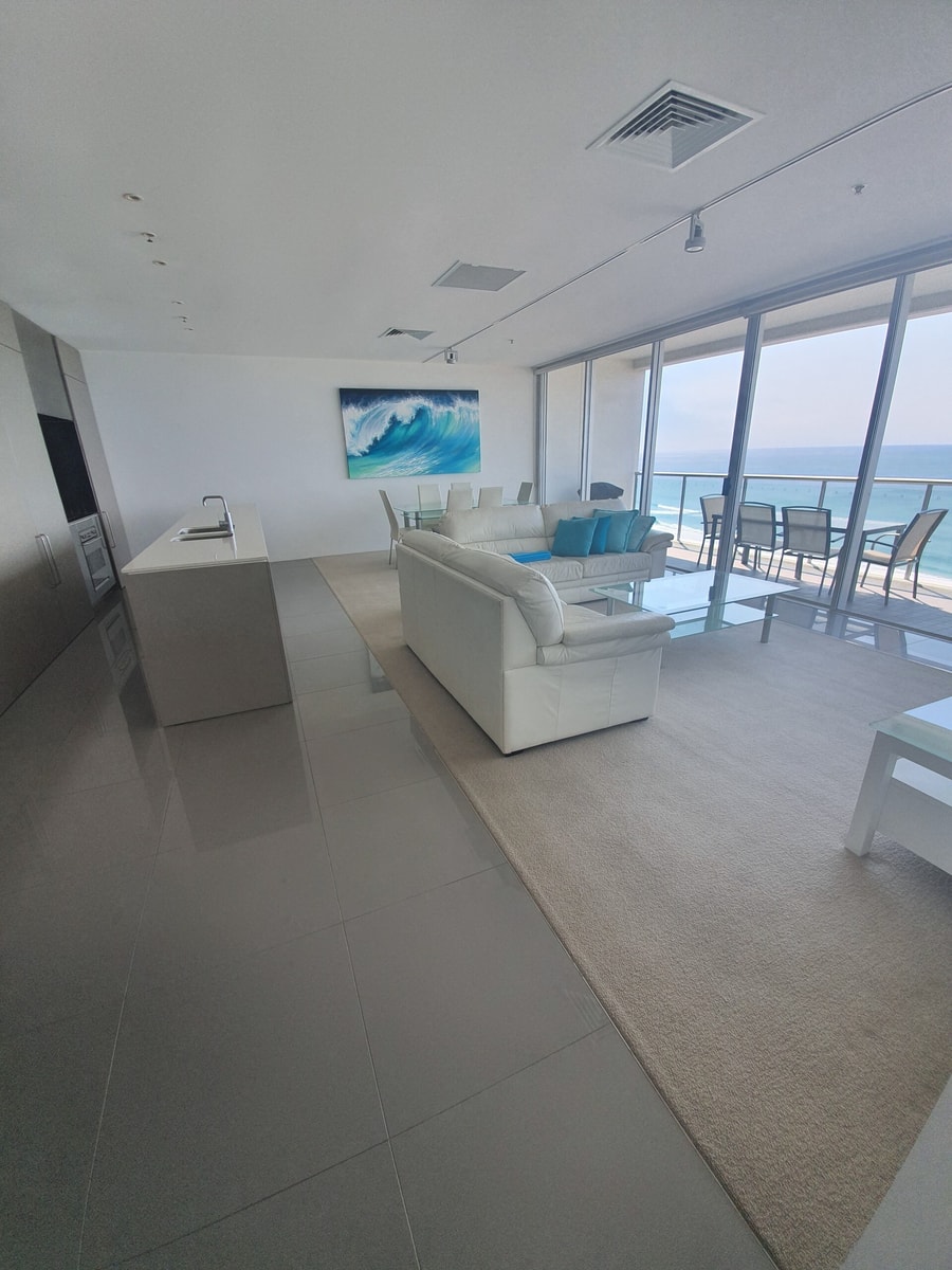 Our stunning 2-bedroom apartment combines the best of city convenience and beachfront living, step out onto the private balcony and take in breathtaking ocean views from the 15th floor. The location is unbeatable, right above the Oasis Shopping Centre, with restaurants, cafes, and shops just downstairs, and the golden sands directly across the road.