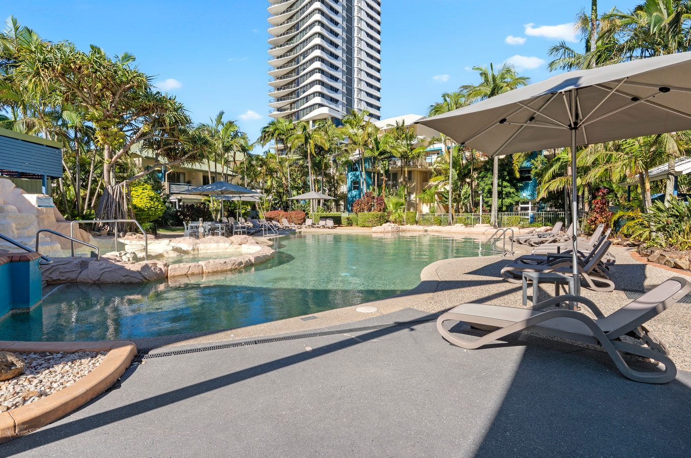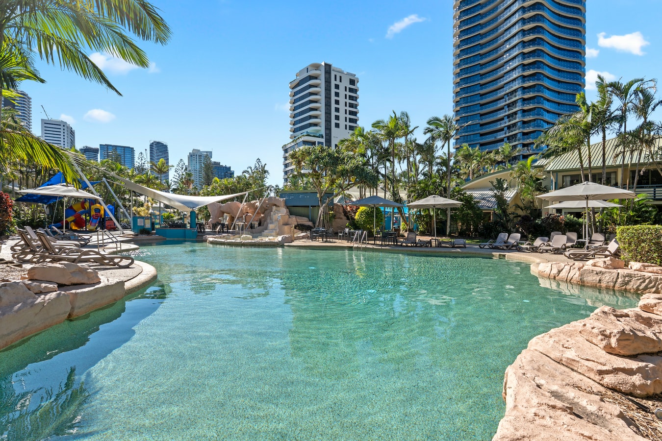 This family-friendly resort is ideally positioned for both relaxation and adventure. You can easily access the beach for swimming and surfing, or explore Broadbeach’s relaxed dining and entertainment scene, all just minutes from your apartment. The resort is also a convenient base for exploring the wider Gold Coast, with public transport, theme parks, and hinterland tours all within easy reach.
