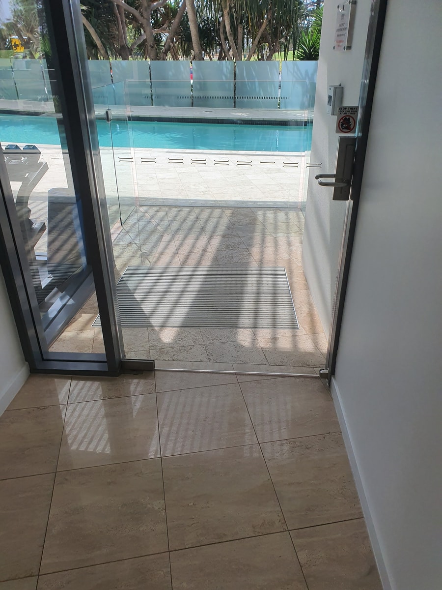 Please ensure you are dry before walking through common areas.